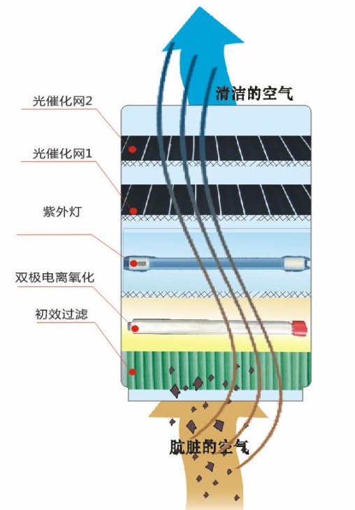 5)我们通过多因子复合催化氧化的作用,达到净化空气的目的。